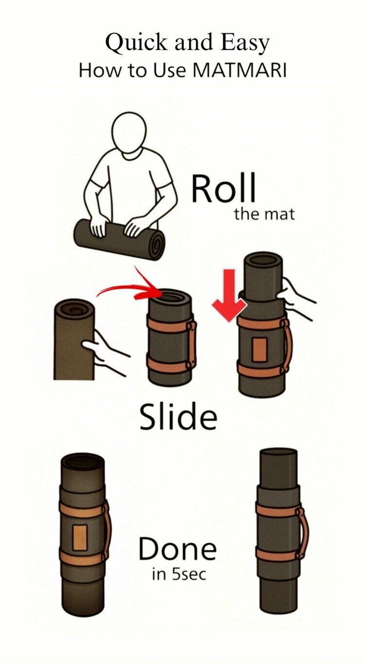 MATMARI is more than a yoga mat carrier – it represents a lifestyle. It’s about redefining how we roll, carry, and live with our mats. Quick, elegant, and effortless, MATMARI transforms daily routines into a refined cultural ritual.